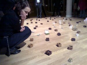 Trochę szkoda, że pierwszy cud stał się już w dniu otwarcia. W nieustannie rozwijanym przedsięwzięciu Chroma angielska kompozytorka Rebecca Saunders bada zależności między dźwiękiem a przestrzenią, publicznością a wykonawcami, tytułową barwą a tłem. Pięć grup instrumentalnych zespołu musikFabrik, dziesiątki najprzeróżniejszych pozytywek i kilka innych obiektów dźwiękowych (między innymi gramofon odtwarzający w zablokowanej windzie płytę z pieśniami hiszpańskiego buntownika Paco Ibáñeza) umieszczono w przepastnych wnętrzach Café Moskau, niegdysiejszej chluby gastronomii NRD, po zjednoczeniu Niemiec przerobionej na klub, teraz – po gruntownym remoncie – udostępnianej jako centrum konferencyjne. Zgodnie z założeniem Saunders część muzyków bacznie obserwuje szlaki wędrówek słuchaczy i podąża ich tropem, a dźwięk faluje w przestrzeni, zmienia kolor, krąży w amfiladzie sal restauracyjnych, ewokując nastrój smutku i nostalgii. Muzyka Angielki jest przeraźliwie namacalna – Saunders eksploruje fizyczne właściwości fal akustycznych, ich barwę, drogę załamania w zależności od tworzywa, od którego dźwięk się odbije. Słuchacze „dotykają” tych struktur – trochę spod znaku introwertycznej twórczości Rihma i innych niemieckich nowych subiektywistów – zderzają się z nimi i kształtują jak miękką rzeźbę. Część drepcze w kółko, część siada na podłodze i czeka, aż muzyka sama do nich przyjdzie, część wsłuchuje się z niedowierzaniem, jak odgłosy blisko stu pozytywek wygrywających kołysanki zlewają się w barwną, rozedrganą chmurę dźwiękową. Kiedy chimeryczny utwór dobiega końca, większość kaprysi jak dziecko i próbuje zadekować się w kącie, żeby wysłuchać go „na gapę” na kolejnej prezentacji, przewidzianej po krótkiej przerwie. Festiwal otwarty. Przeczuwamy, że tym razem będzie inaczej.