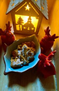 (Tak, to jest nasza szopka pod naszą choinką.)