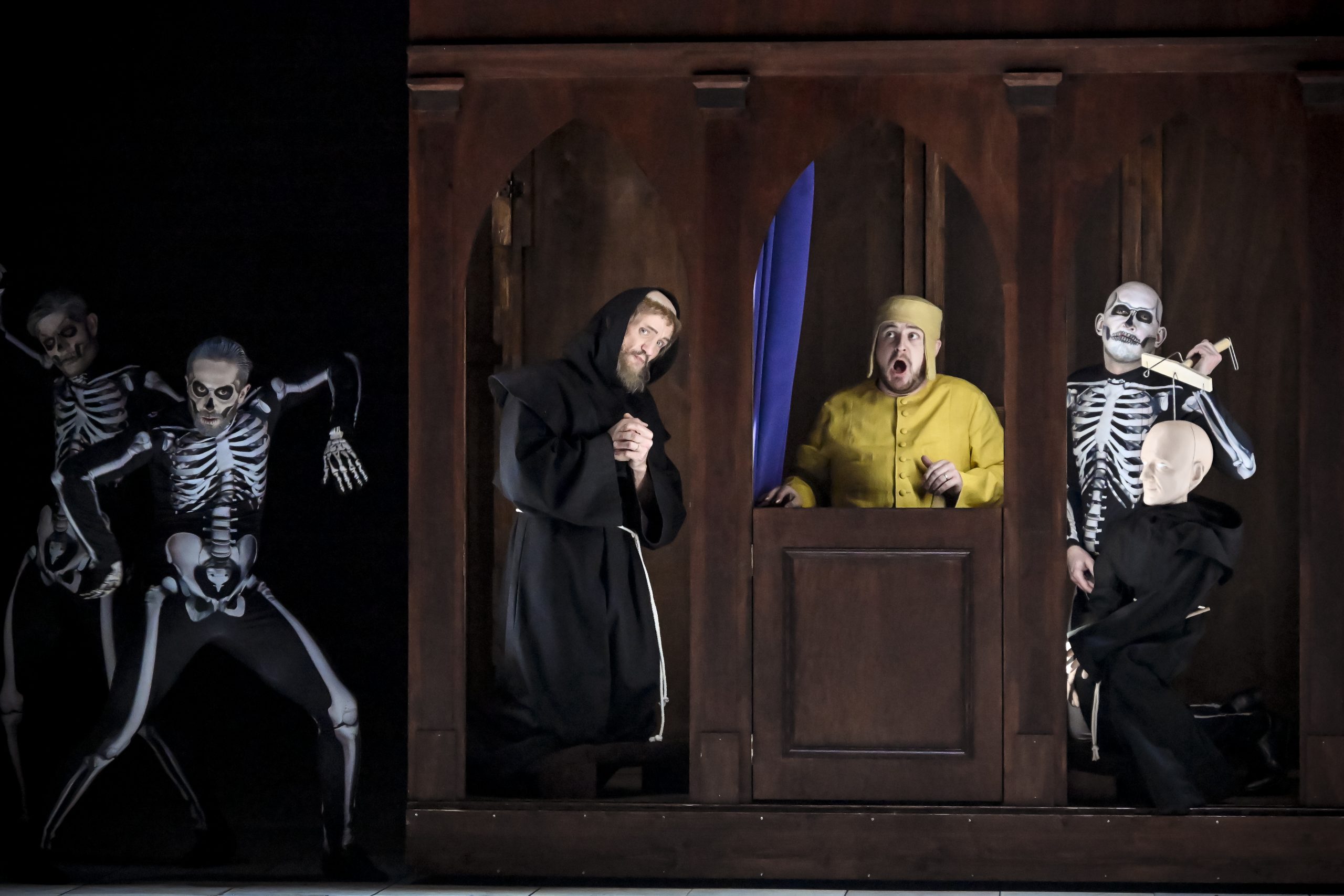 Niektóre pomysły Heřmana są tak zwariowane, że czasem miałam wrażenie oglądania filmowej Arabeli na przemian z Czerwoną oberżą. Gdzie jednak trzeba liryzmu, grozy albo powagi, tam widz ją odnajdzie. Na osobną wzmiankę zasługuje współpraca reżysera z choreografem Markiem Svobodníkiem, który wyposażył Raracha w świtę kościotrupów w czarno-białych kostiumach, poruszających się z upiornym wdziękiem tancerzy danse macabre (w scenach, gdzie Rarach nie paraduje w habicie Beneša, tylko jawi się jako czart-szkielet, śpiewak animuje przed sobą lalkę pustelnika). Dodajmy do tego świetnie rozegrane sceny zbiorowe, sugestywne projekcje Dominika Žižka i poprowadzoną przez samego Heřmana reżyserię świateł, a zyskamy produkcję, która uwiedzie każdego – od dziecka, które rodzice po raz pierwszy zaprowadzili do opery, aż po wybrednego melomana, który dotąd nie wierzył w moc dzieła Smetany.